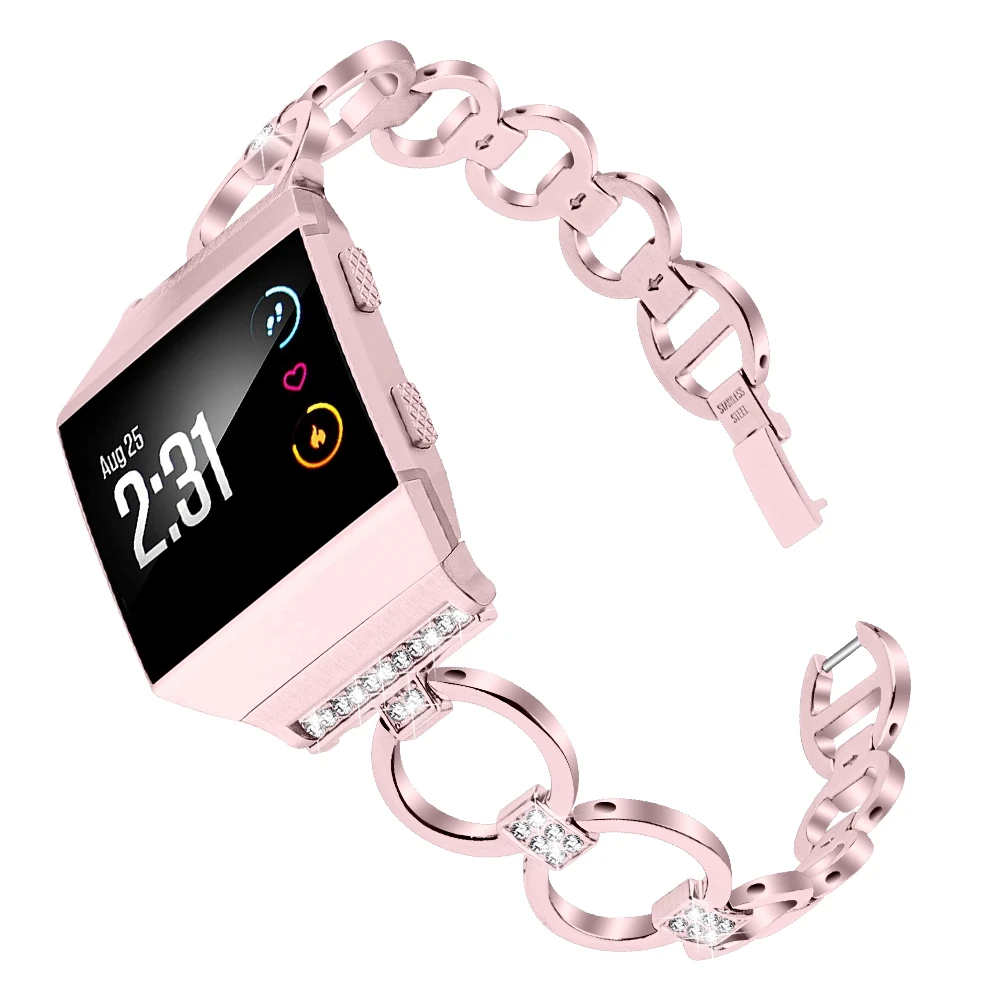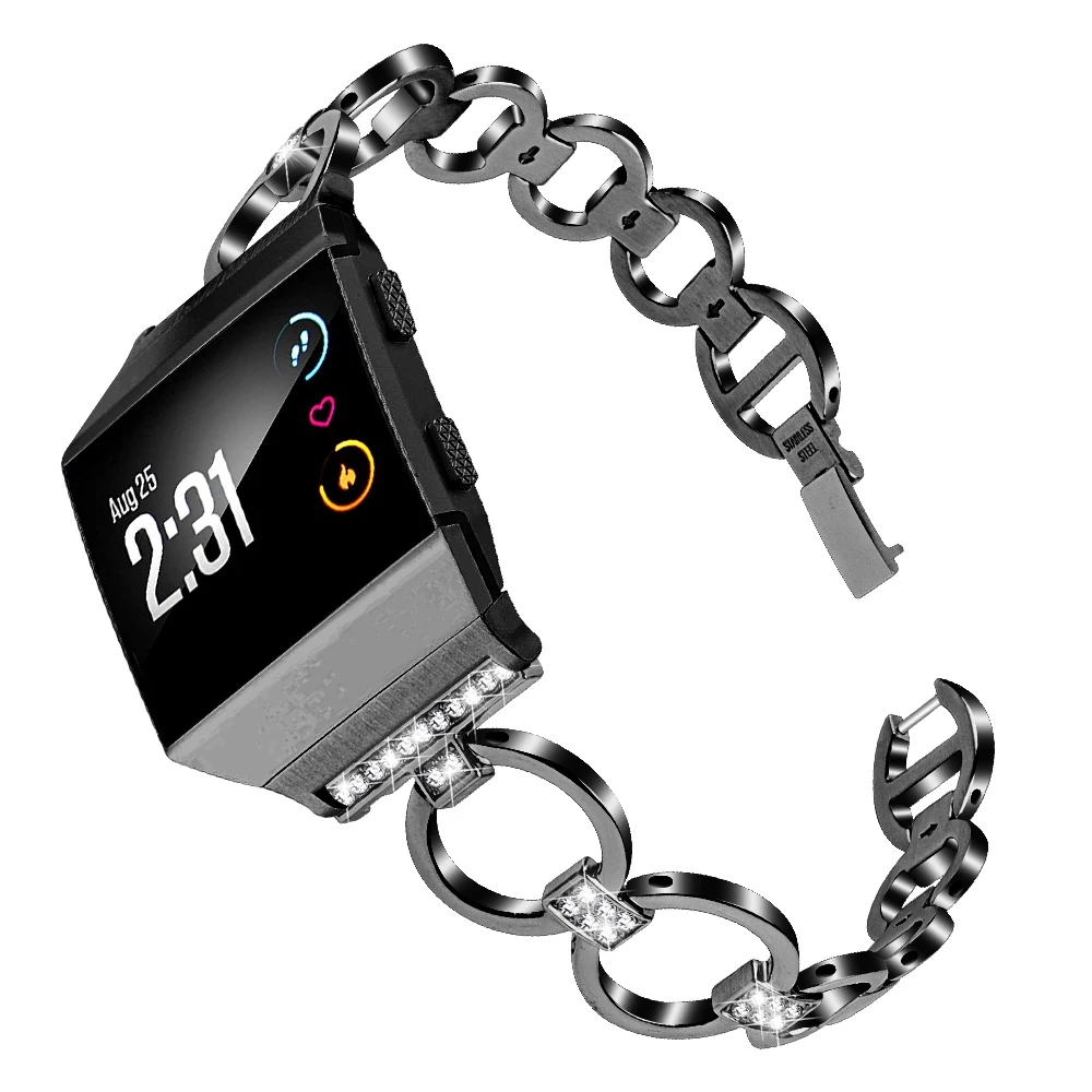 TOP Buling Bands for Fitbit Ionic Smart Watch Wristband Double Ring Diamond Metal Band Women Replacemen